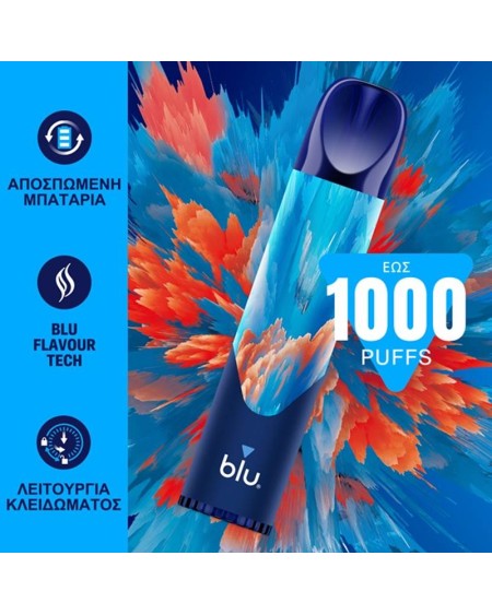 Το νέο Blu Bar 1000 διαθέτει ημιδιαφανές επιστόμιο που σου επιτρέπει να βλέπεις την στάθμη του υγρού με νέα τεχνολογία θέρμανσης Blu Flavour Tech για ακόμα πιο πλούσια γευστική εμπειρία και λειτουργία κλειδώματος.