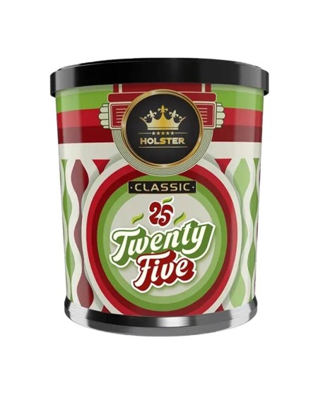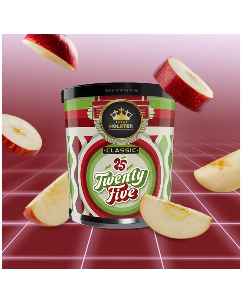 Ο καπνός ναργιλέ Holster Tobacco TwentyFive είναι ένα δημοφιλές γερμανικό shisha tobacco με γεύση Double Apple (διπλό μήλο), που συνδυάζει τη γλυκύτητα του κόκκινου και πράσινου μήλου με μια πικάντικη νότα από γλυκάνισο.