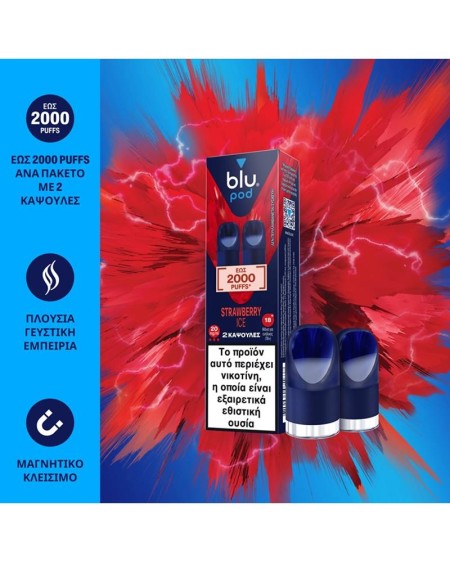 • Οι κάψουλες Blu Pod περιέχουν προπυλενογλυκόλη, φυτική γλυκερίνη, αρωματικές ουσίες και νικοτίνη.