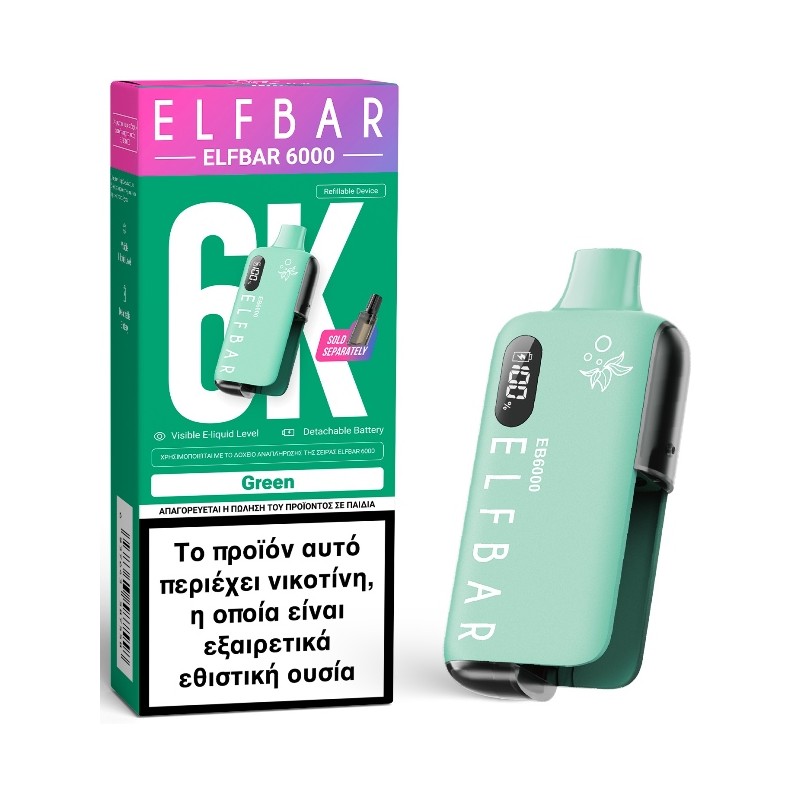 • 1 συσκευή Elf Bar EB6000 σε πράσινο χρώμα
